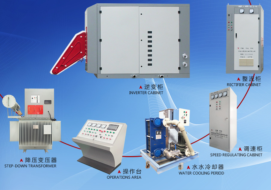 固態(tài)高頻基本原理:普通三相交流電經(jīng)變壓器降壓后,進(jìn)入整流柜經(jīng)過整流、調(diào)壓、濾波環(huán)節(jié)后,變?yōu)檫B續(xù)可調(diào)的直流電,再進(jìn)入逆變橋(主要功率元件采用大功率晶體管MOSFET)變?yōu)楦哳l電流,供給負(fù)載槽路即可用于感應(yīng)加熱。逆變槽路功率單元采用模塊化結(jié)構(gòu),每對功率單元可輸出50KW以上,設(shè)備功率不同,所用功率單元數(shù)量就不同。槽路為串并混聯(lián)諧振形式,沒有高電壓,沒有輸出變壓器。